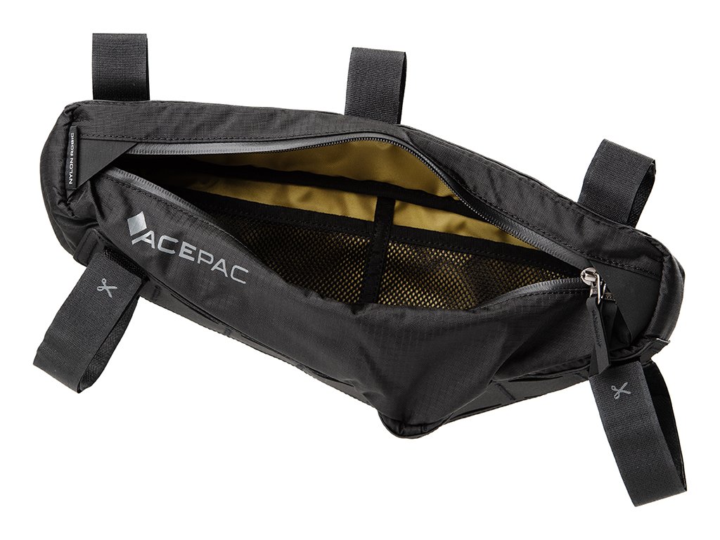 Stejně jako u větší varianty Zip Frame Bag je standardem voděodpudivý zip YKK s dvěma jezdci pro snadnější přístup k převáženému vybavení. Uvnitř brašny jsou dvě síťované kapsy našité na výrazné podšívce, což přináší lepší přehlednost a orientaci v brašně. Nový lehký a odolný vnější materiál Nylon Robic společně s optimálním objemem určují brašnu pro použití minimalisty při putování nalehko a nebo na závodech, stejně tak jako pro běžné smrtelníky při každodenních jízdách. Tuhle brašnu z rámu není důvod odepínat. Hodí se skvěle jak na převážení nejnutnějšího nářadí, peněženky, klíčů a telefonu při rychlém švihu, aniž by aerodynamicky ovlivňovala váš výkon, stejně jako doplňková brašna při delší cestě v kombinaci s Mini Bar Rollem, Bar Bagem a Drop Post Bagem.
