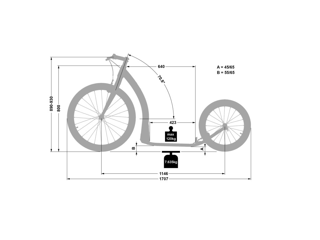 Díky nastavitelné výšce nášlapu se jedná o univerzální koloběžku, se kterou projedete téměř jakýkoliv terén. Pro jízdu na rovném povrchu je ideální 45 mm, ale 65 mm světlé výšky, na které se koloběžka dostane při zvýšení nášlapu, projede prakticky cokoliv.