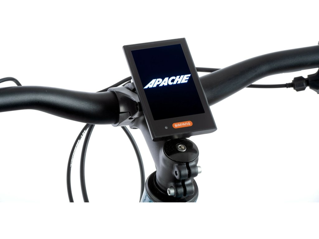 Elektrokola Apache osazujeme uzavřeným systémem Bafang - motor, baterie, displej, řídící jednotka, elektrické kabely a nabíječka od jedné firmy (podobně jako systém BOSCH). Kompletní systém Bafang je dlouhodobě testován a certifikován výrobcem jako funkční celek, který dohromady funguje mnohem lépe, stabilněji a s vyšším výkonem a dojezdem, než když je složen z komponentů od různých výrobců.