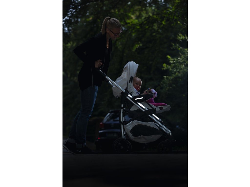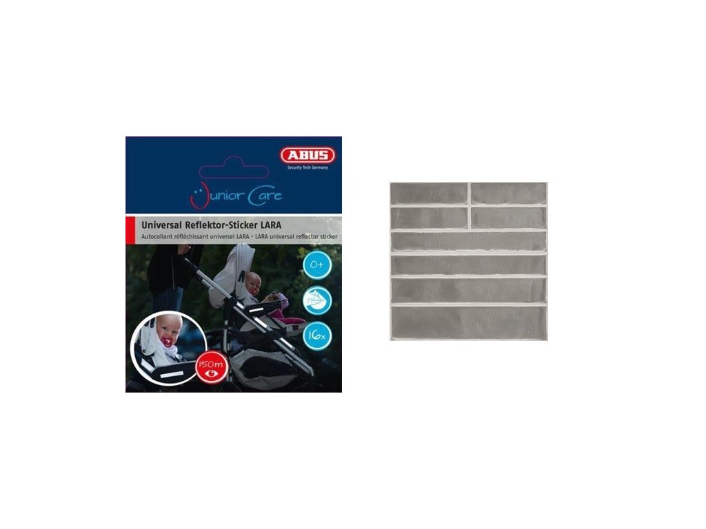 Chraňte svůj kočárek, jízdní kola a další předměty pomocí univerzálních reflexních nálepek LARA. Sada obsahuje 16 nálepek různých délek. Reflexní nálepky můžete přilepit kamkoli.