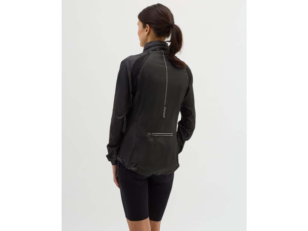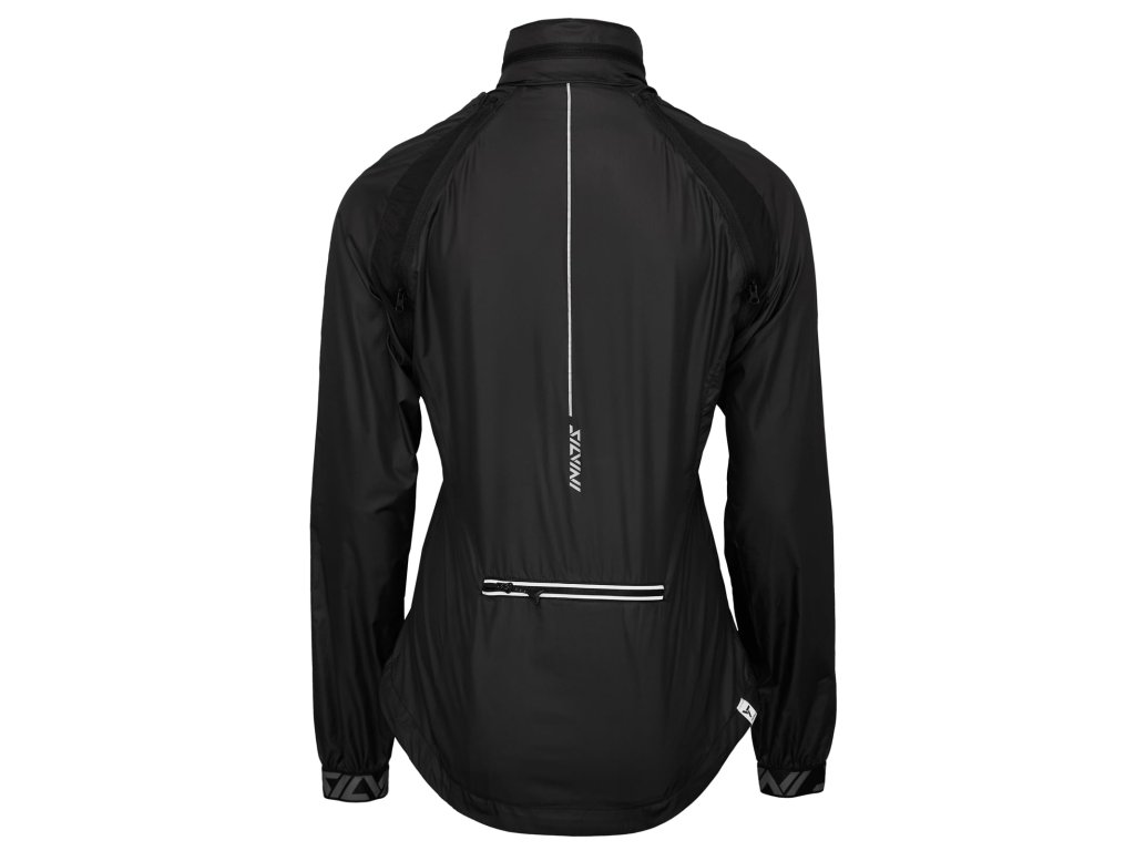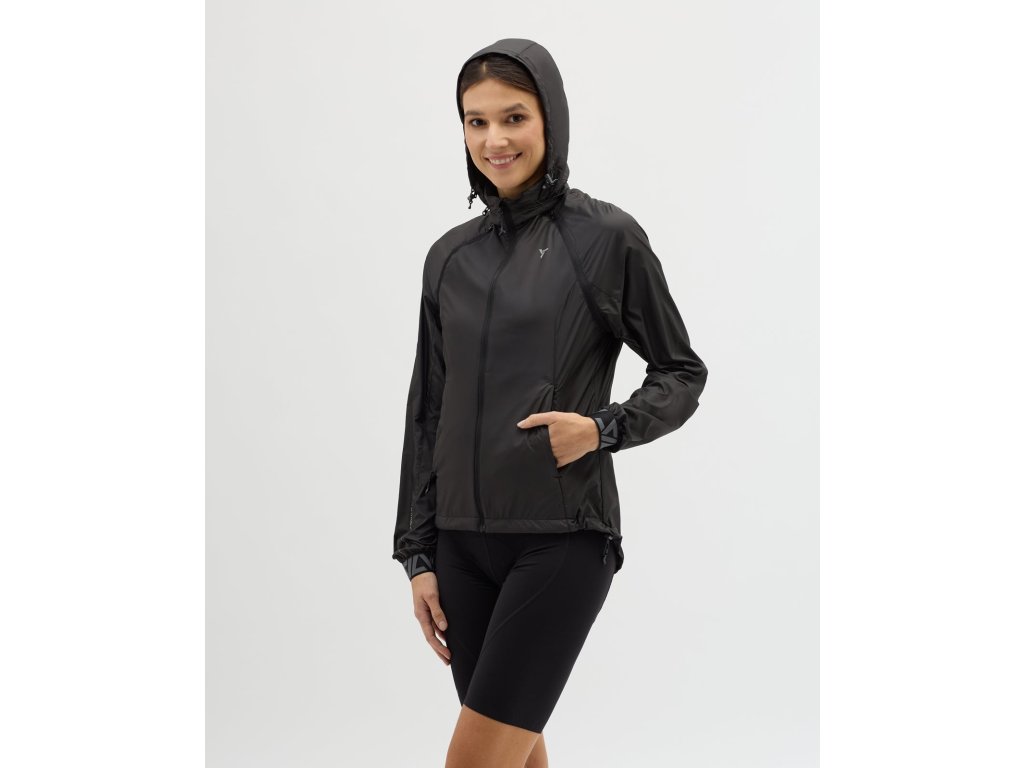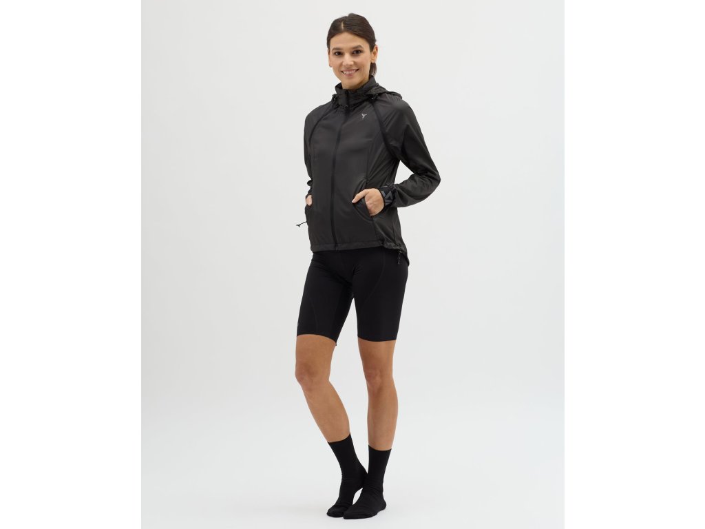 Dámská větruodolná bunda z materiálu Windbreaker, sbalitelná do malého sáčku. Odepnutím rukávů se změní ve vestu, kapuci lze složit do límce. Má tři zipové kapsy, stahování spodního kraje a reflexy.