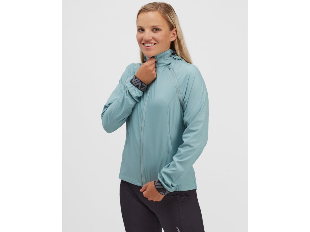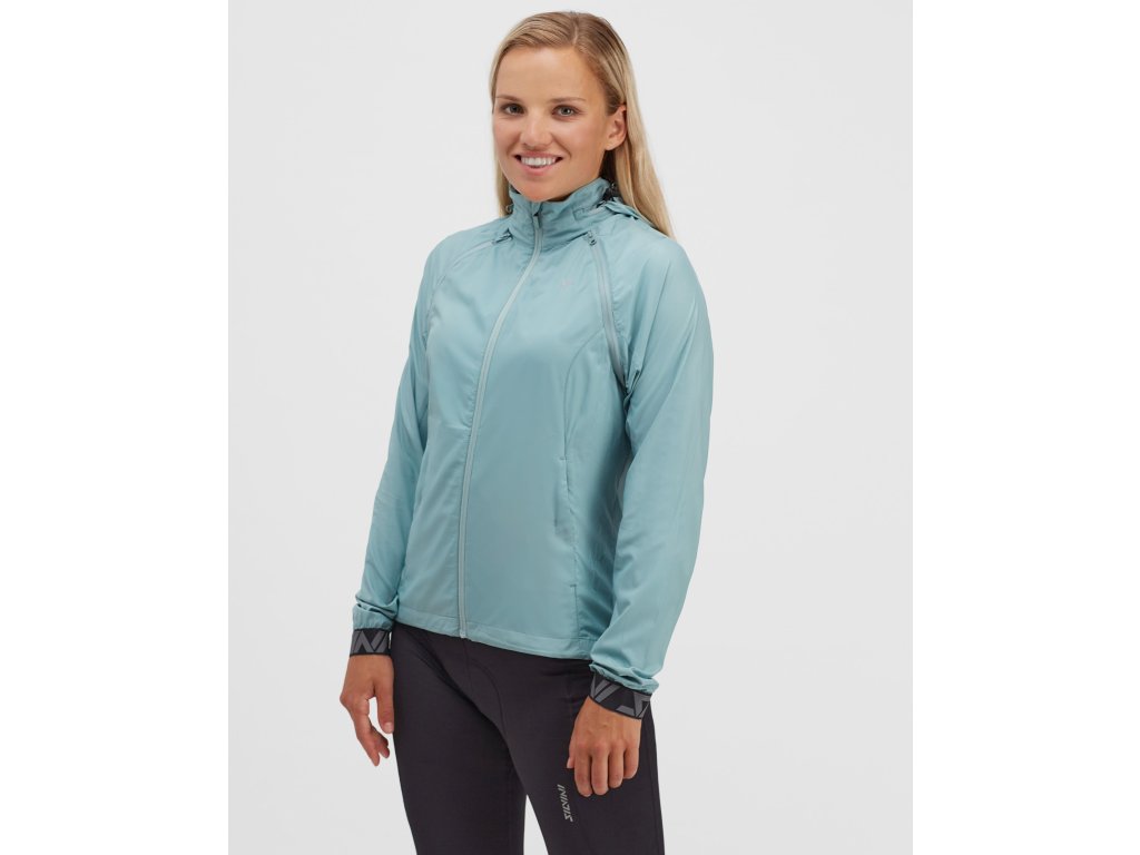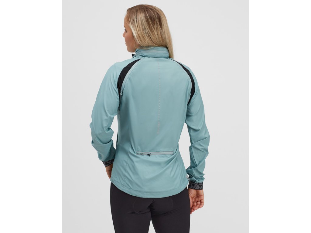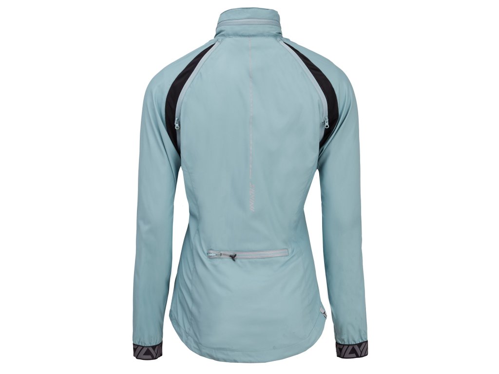 Dámská větruodolná bunda z materiálu Windbreaker, sbalitelná do malého sáčku. Odepnutím rukávů se změní ve vestu, kapuci lze složit do límce. Má tři zipové kapsy, stahování spodního kraje a reflexy.