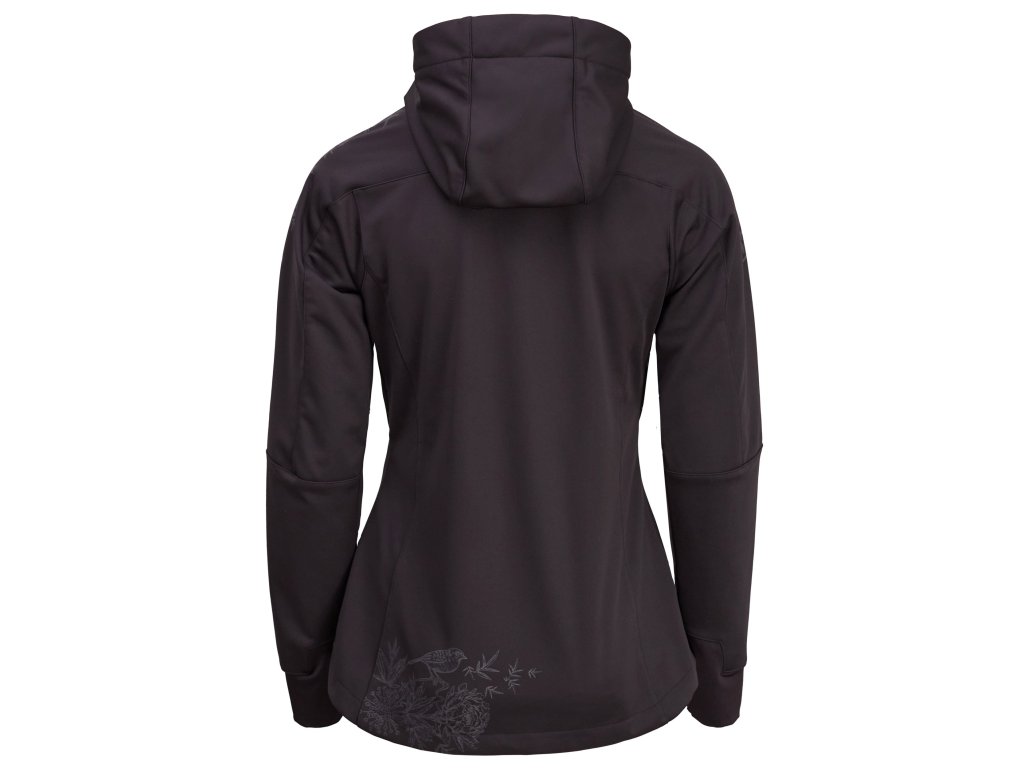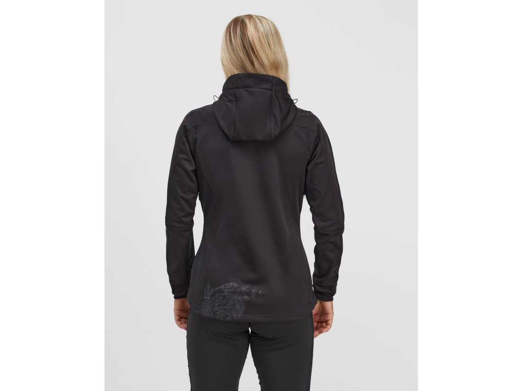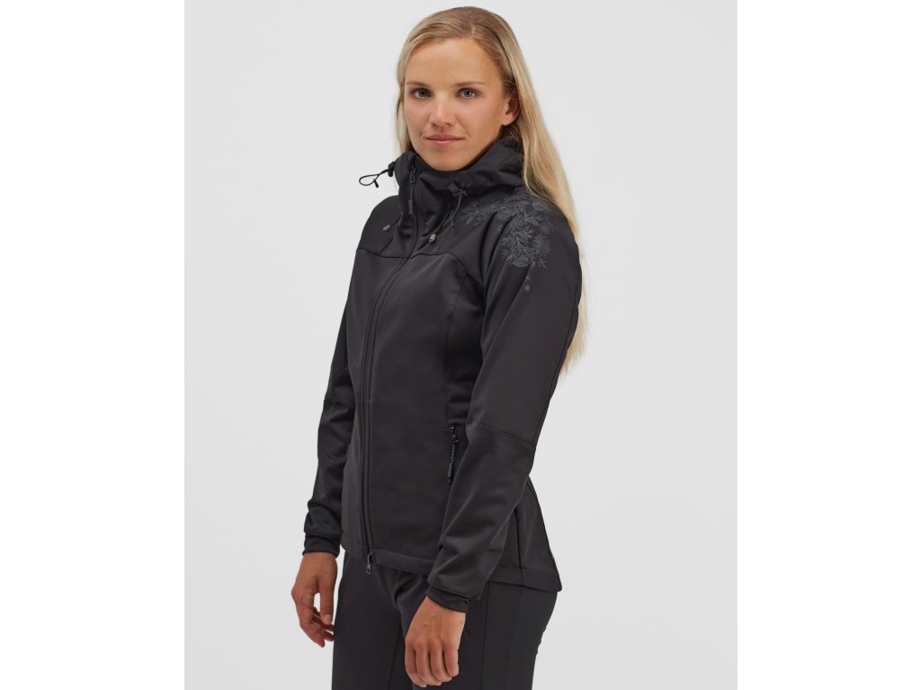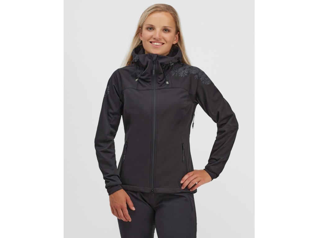 Dámská větruodolná softshellová bunda s kapucí, s membránou 10/8 a reflexními prvky. Ventilaci zajišťují zipy v podpaží. Vhodná pro rekreační běžkařky i na jiné outdoorové aktivity od podzimu do jara.