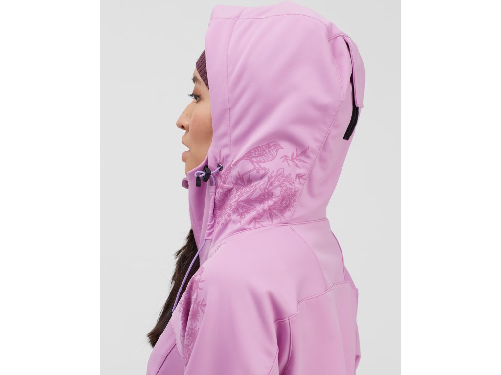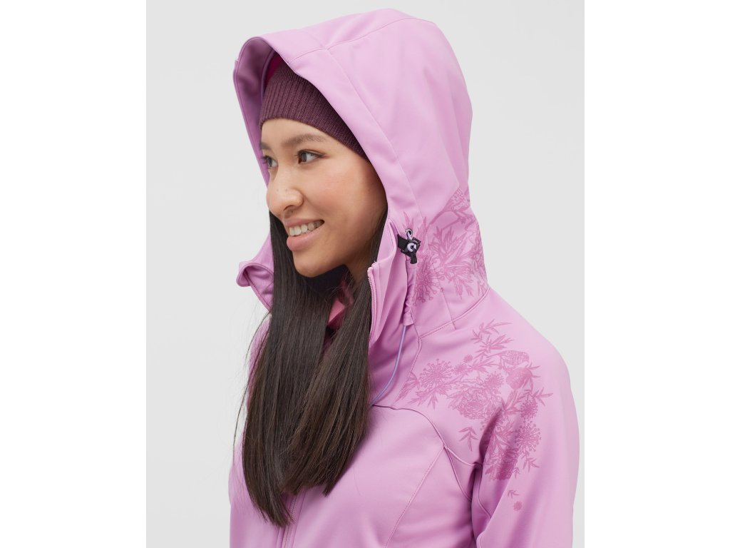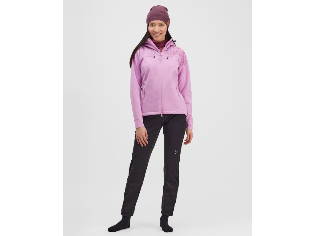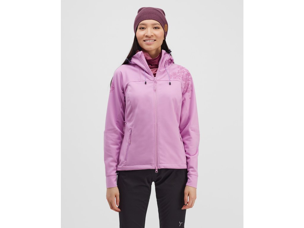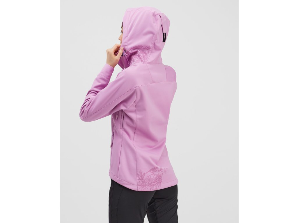 Dámská větruodolná softshellová bunda s kapucí, s membránou 10/8 a reflexními prvky. Ventilaci zajišťují zipy v podpaží. Vhodná pro rekreační běžkařky i na jiné outdoorové aktivity od podzimu do jara.