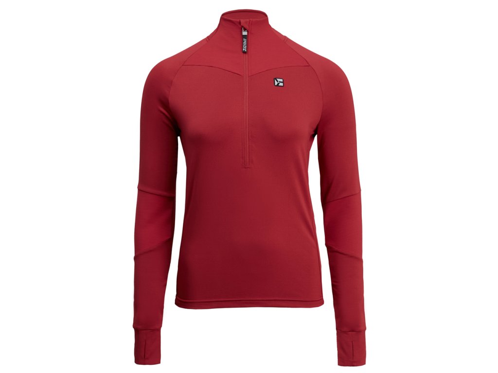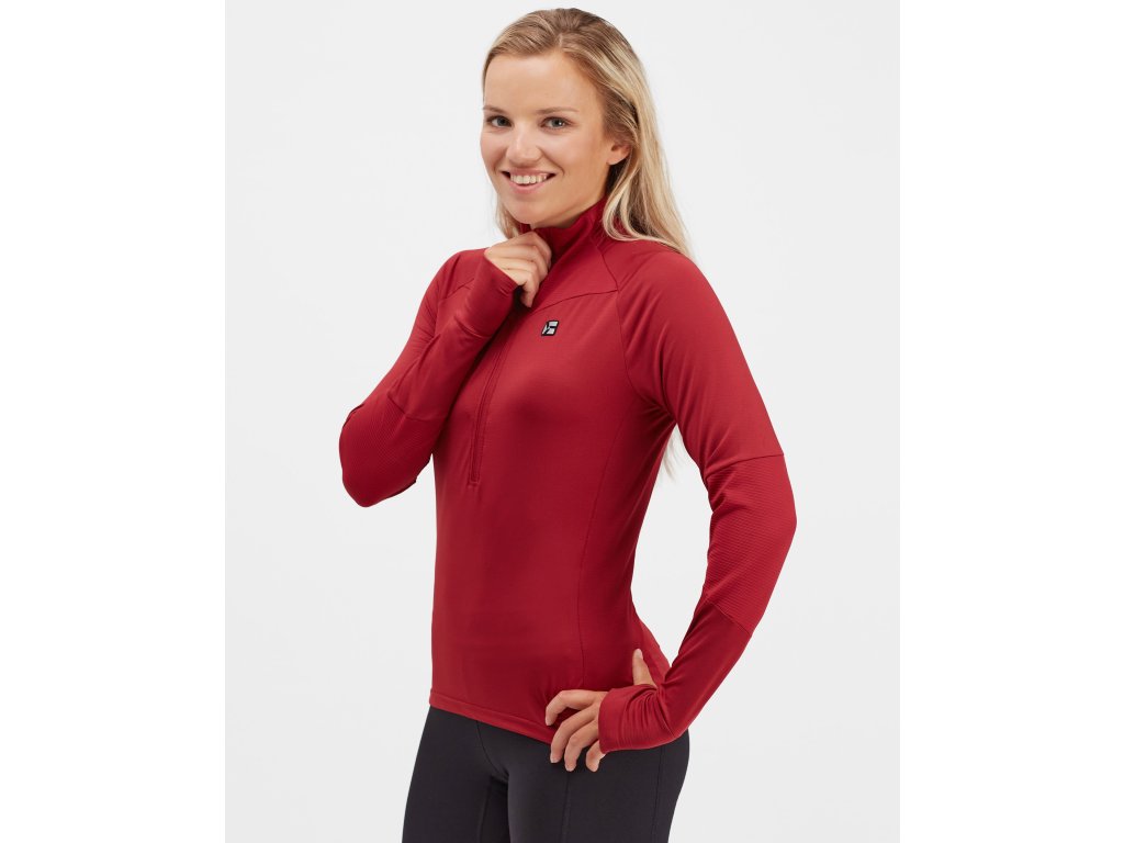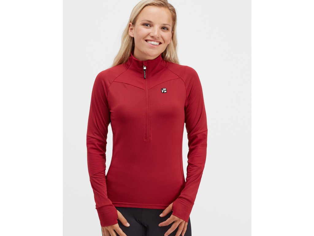 Dámská lehká, funkční, elastická mikina úzkého střihu se tříčtvrtečním zipem, vhodná jako druhá tenká vrstva na běžky či jiné outdoorové aktivity. Kombinuje hladký a strukturovaný QuatroFLEX.